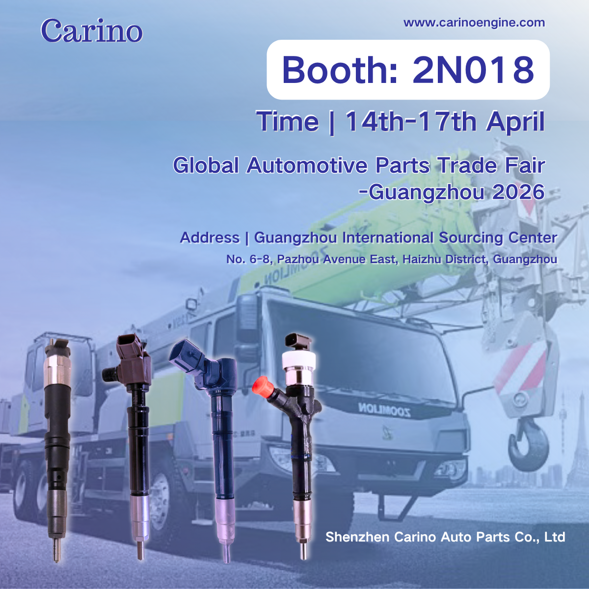 As a diesel injector manufacturer in China, Carino Auto Parts will bring our showcase to customers the fuel injectors, injector nozzles, and fuel pumps that our factory has been manufacturing for over 10 years. These components are used for diesel engines that used in car models like Toyota, Volvo, Isuzu, Mitsubishi, Hyundai, Nissan etc. The Industries cover construction machinery, agricultural machinery, and marine. By then, you will find all kinds of diesel spare parts your need on our booth.